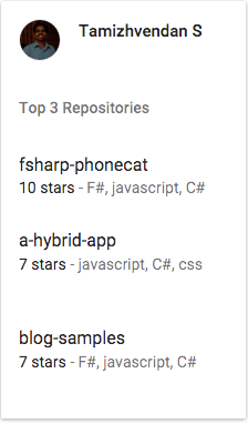 - Popular Repos - Top 3 Repos of the Given User (determined by the number of stars)