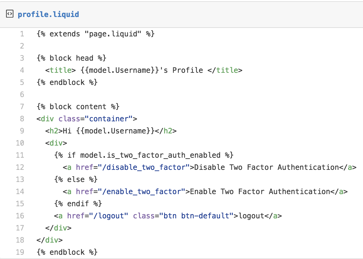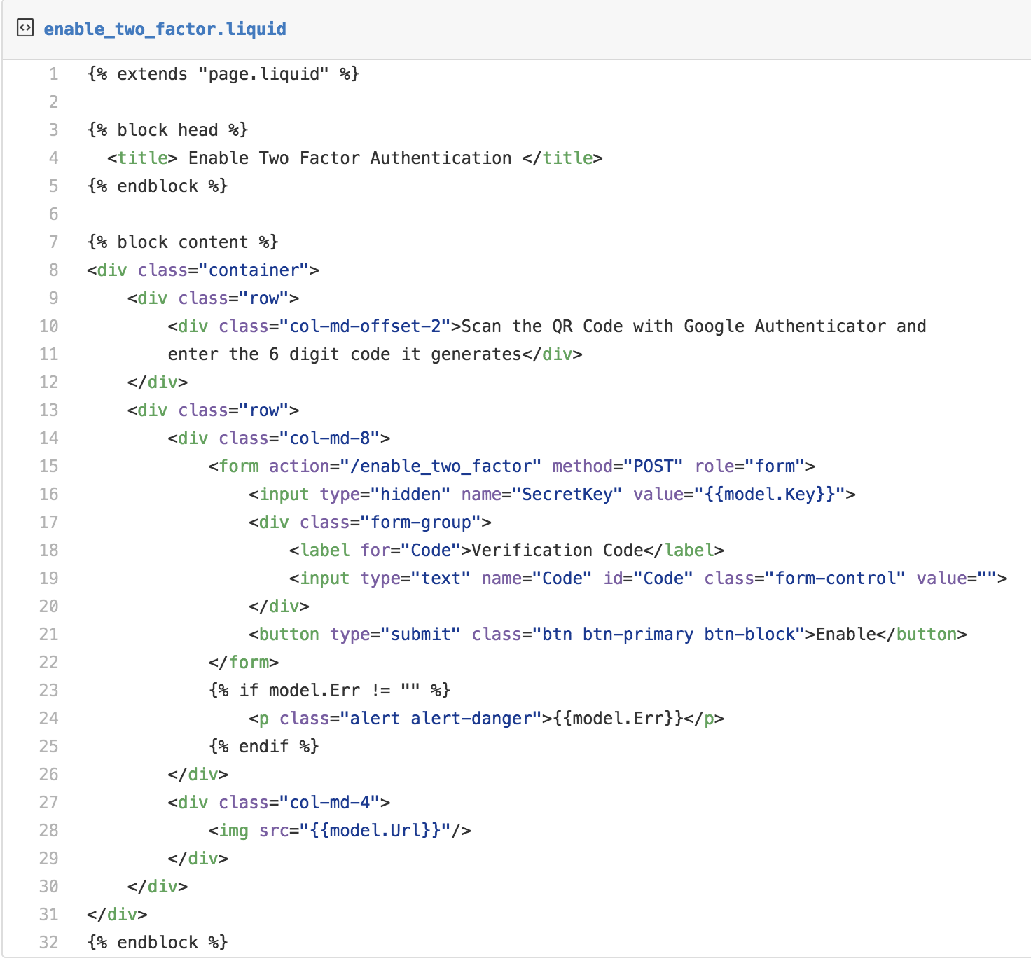 | _ -> ()The next step is to define a liquid view template for the enable_two_factor page.