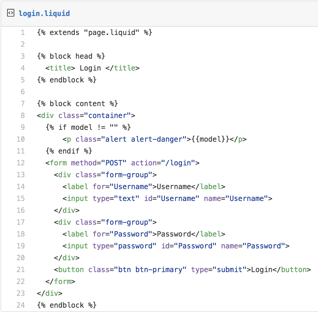 <!-- .... -->Then create a new template file login.liquid in the views directory