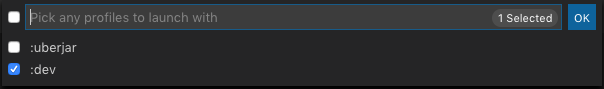 To see it in action, stop the current REPL session and start it again. This time profile selection Calva prompt will include the dev profile in the list of options.