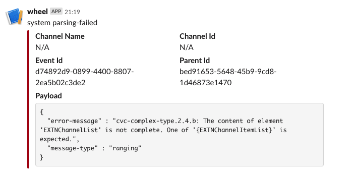 If parsing is successful, for each channel in the message, we check whether the given channel exists.