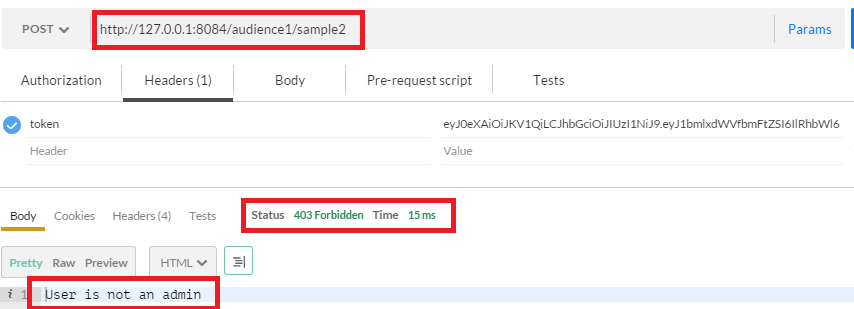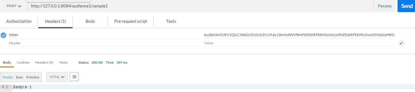 Hurray! We have made it. “/audience1/sample1” is a secured API now!